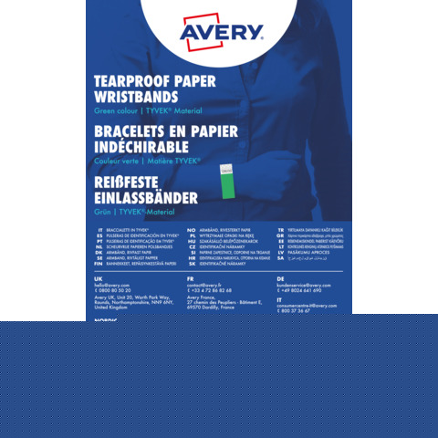 Portabadge e portanomiBraccialetti identificativi in?Tyvek? Avery resistenti all'acqua - conf. 500 pz - verde fluo - TYVGN