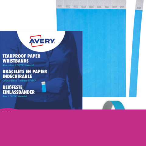 Portabadge e portanomiBraccialetti identificativi in?Tyvek? Avery resistenti all'acqua - conf. 500 pz - blu fluo - TYVBL-5