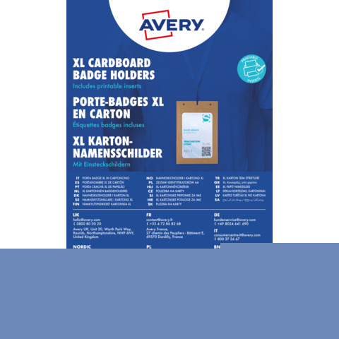 Porta badge Avery A6 in cartoncino certificato FSC? - inserti in carta inclusi - conf. 25 pz - 4839