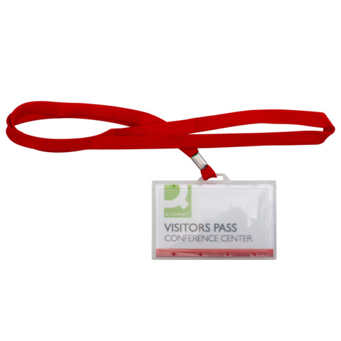 Portabadge rigido in PP Q-Connect 94x60 mm con cordoncino rosso - conf. 50 pz - KF03303