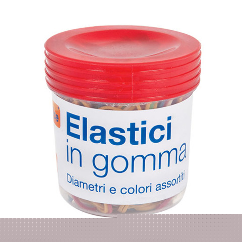 MinuteriaElastici in gomma Nikoffice in barattolo da 100 g colori e misure assortite 06NIK034