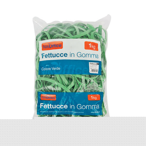 MinuteriaFettucce in gomma verde 8 mm Nikoffice in busta da 1 Kg - ? 150 mm - 06NIK031