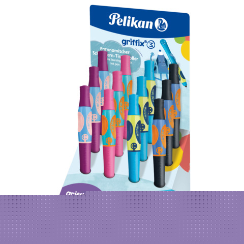 Penne StilograficheEspositore 12 penne sferografiche Pelikan Griffix con impugnatura a pinza - fusto colori assortiti -