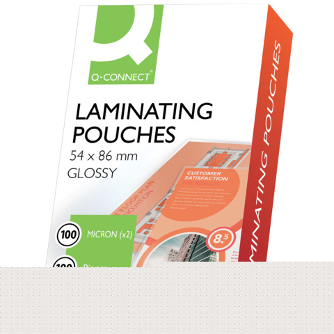 Pouches per plastificatrici Q-Connect 2x100 ?m finitura lucida 54x86 mm Conf. 100 pezzi - KF01202
