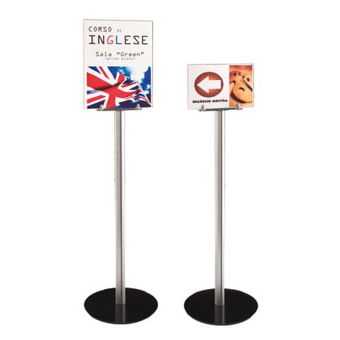 Porta segnaletica da pavimento su piantana A3 verticale - Silver Tecnostyl 138x30 cm - MB09V