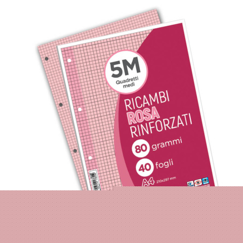 QuaderniRicambi rinforzati per quaderni ad anelli Blasetti - A4 - 80 g/m? - 40 ff - 5M - rosa - 7805