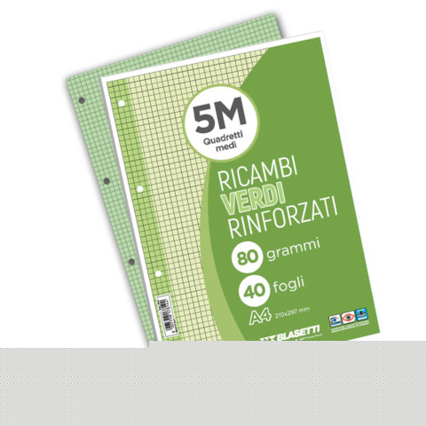 QuaderniRicambi rinforzati per quaderni ad anelli Blasetti - A4 - 80 g/m? - 40 ff - 5M - verde - 7814