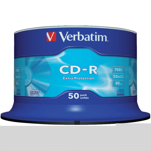 StorageCD-R Extra Protection Verbatim 700 MB 52x Spindle Case da 50 cd-r - 43351
