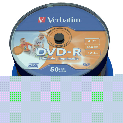 StorageDVD-R Verbatim 16x 4.7 GB stampabile Spindle Case in confezione da 50 dvd - 43533