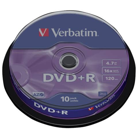 DVD+R Verbatim 16x 4.7 GB Spindle Case da 10 dvd-r - 43498