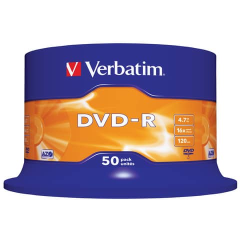 StorageDVD-R Verbatim 16x 4.7 GB Spindle Case in confezione da 50 dvd-r - 43548