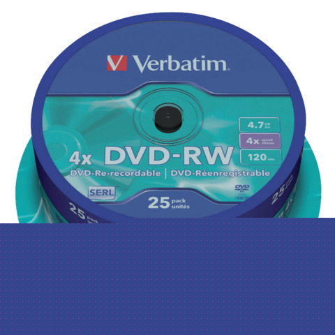 DVD-RW Verbatim 4.7 GB 4x Spindle Case in confezione da 25 dvd-rw - 43639