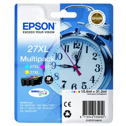 Consumabili originalicartucce inkjet Sveglia 27XL Epson ciano+magenta+giallo Conf. 3 - C13T27154012