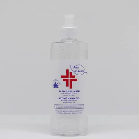 Gel igienizzante mani (alcol 70%) 500 ml con dosatore - Active linea Bosco di Rivalta - profumo di a