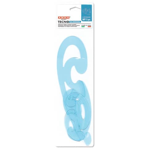 Disegno tecnicoSet curvilinee ARDA Serie Tecnoschool polistirolo termoresistente azzurro trasparente Conf. 3 pezzi