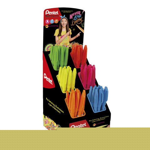 EspositoriEspositore 60 pennarelli punta in fibra Pentel Brush Sign Pen Trendy colori assortiti - 0022404