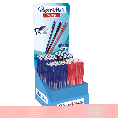 Espositore 84 penne cancellabili Paper Mate Replay colori nero/blu/rosso - 2209155