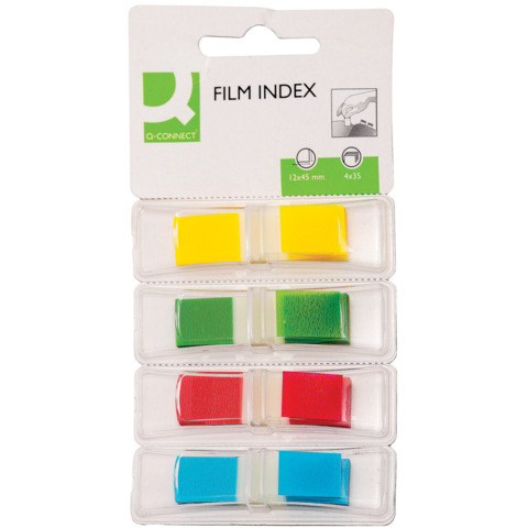 Segnapagina in blister Q-Connect neon 12x45 mm 4 colori trasparenti blister 4 blocchetti da 35 - KF0