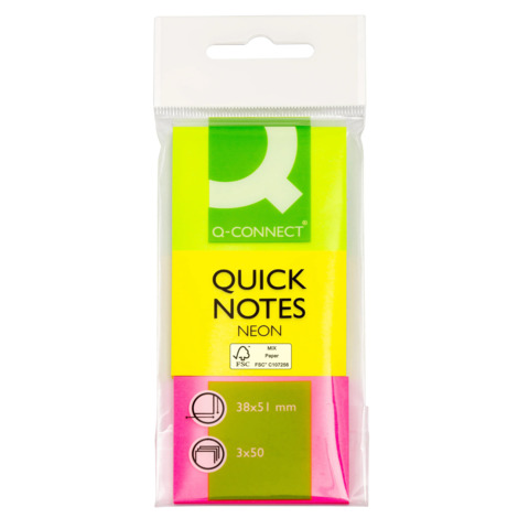 Foglietti riposizionabili Q-Connect Neon assortiti 38x51mm blister 3 blocchetti da 50 - KF01224