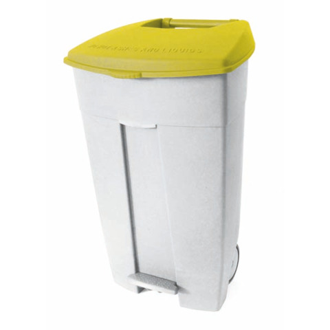 Contenitore mobile a pedale Medial Contiplast 120L in PP bianco-giallo 102536