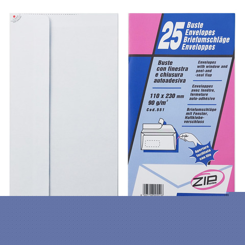 Buste Blasetti STRIP 90 g/m? bianco - conf. 25 pz - 110x230 mm - 551