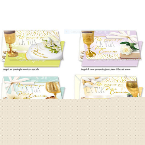 Biglietti augurali portasoldi Comunione Cromo assortiti in 3 soggetti - conf. 12 pz - CO.7147
