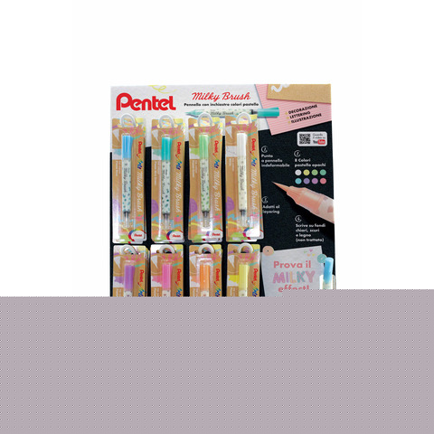 Espositore 24 pennarelli Pentel Milky Brush colori assortiti 0022402