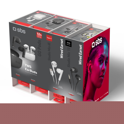 Espositore 60 auricolari wireless TWS SBS GO PODS semi in-ear colori assortiti EXPO-15AUDIOCA+