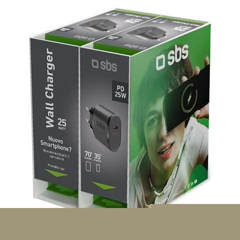Espositore 12 caricabatterie SBS 25 W - Ricarica ultra rapida e uscita USB-C nero - EXPO-SBSWALL2+