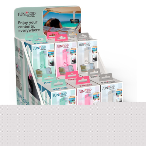 Espositore 12 portacellulare da viaggio Sun Grip by Music Hero colori assortiti EXPO-SUNGRIPPK+
