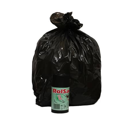 Sacchi immondizia per rifiuti inorganici Rolsac 127 L 80x110 cm - 49 ?m nero - conf. da 100 pezzi -