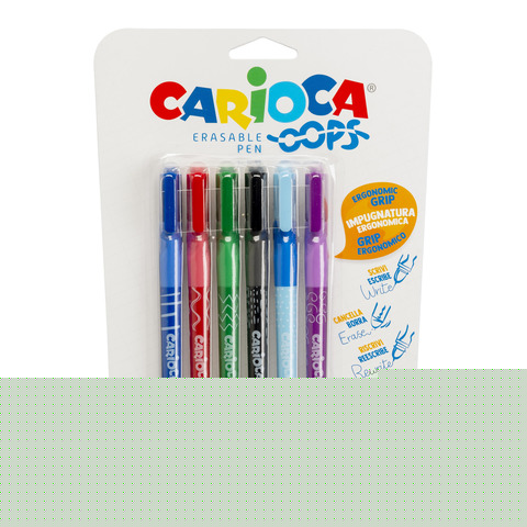 Penna cancellabile Carioca Oops Easy punta media 0,7 mm - conf. 6 pz - colori assortiti - 41027