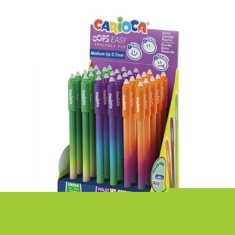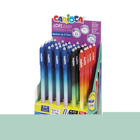 Espositore 30 penne cancellabili Carioca Oops Easy punta media 0,7 mm assortiti 41046
