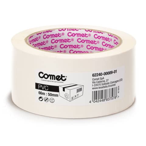 ImballoNastri adesivi per la spedizione Comet in PVC con adesivo in gomma naturale 50 mm x 66 m bianco - 62