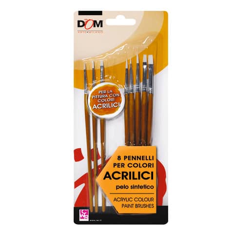 DisegnoPennello in pelo sintetico DOM - conf. 8 pezzi - per colori acrilici 11649