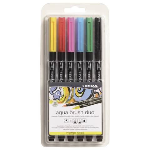 DisegnoPennarelli AQUA BRUSH DUO Set 6 pennarelli confezione appendibile Lyra colori primari - L6521060