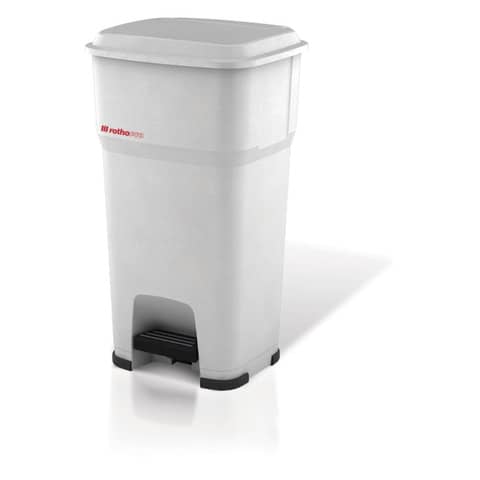 Gestione rifiutiCestino gettacarte Rotho Hera 85 L con pedale e coperchio bianco - F800070