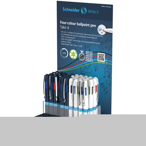 Espositore 36 penne a sfera ricaricabili 4 colori Schneider Take 4 tratto M - P305462